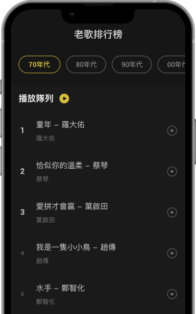 定期更新七十年代,八十年代,九十年代及零零年代國語老歌排行榜。