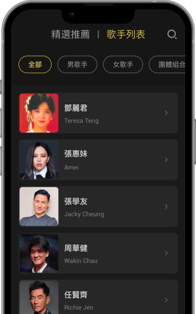 歌手涵蓋60年代、70年代、80年代、90年代等各個年代。